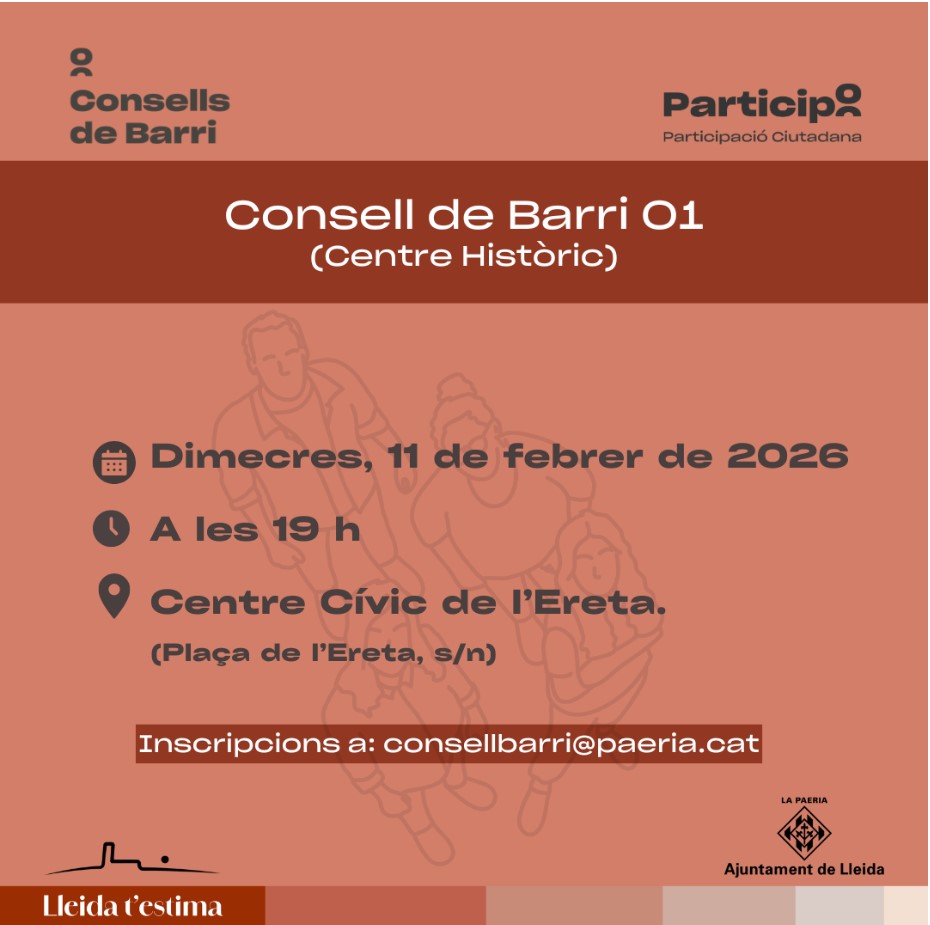 És imprescindible que ens confirmeu l’assistència a l’esdeveniment al correu: consellbarri@paeria.cat