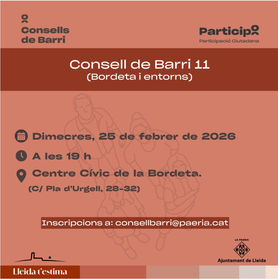 És imprescindible que ens confirmeu l’assistència a l’esdeveniment al correu: consellbarri@paeria.cat