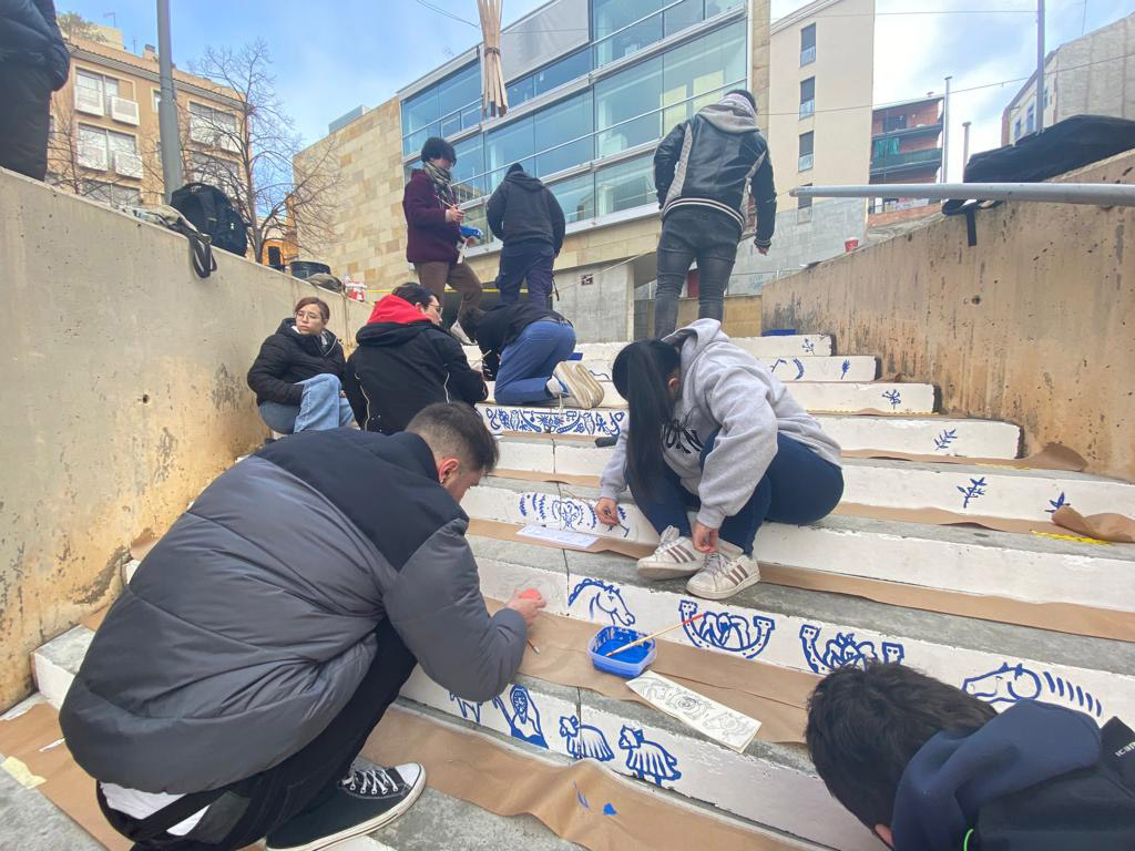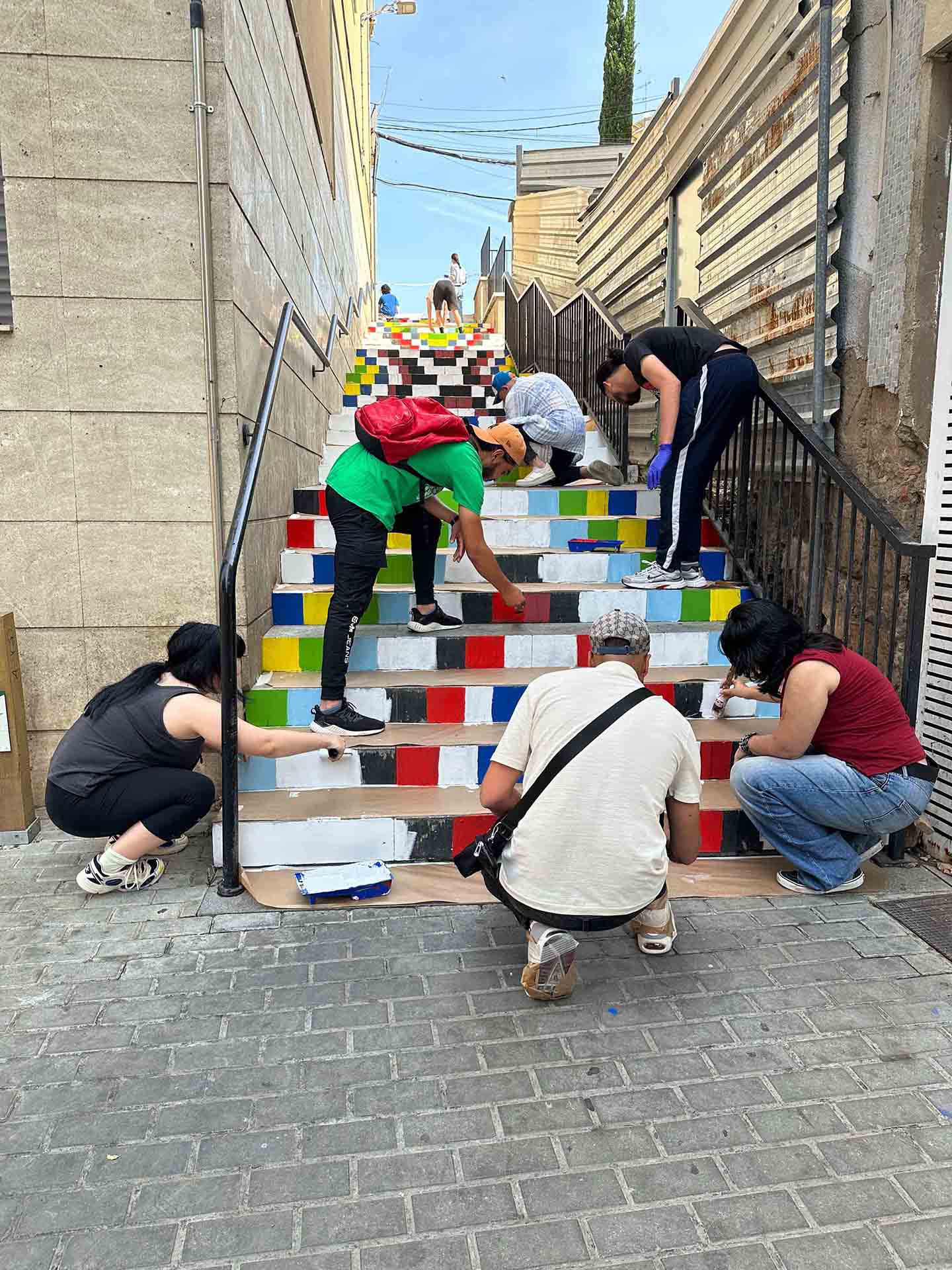 L’any 2024 una vintena d’estudiants de secundària de l’Institut Guindàvols i de l’Institut Maria Rúbies han repintat les escales de la plaça de l’Ereta juntament amb usuaris i usuàries de la Fundació Jericó en el marc del projecte “Pintem el Centre Històric”, que forma part del programa d’aprenentatge-servei (ApS) “M’apunto”, el qual organitza la regidoria de Participació i ha finalitzat avui.